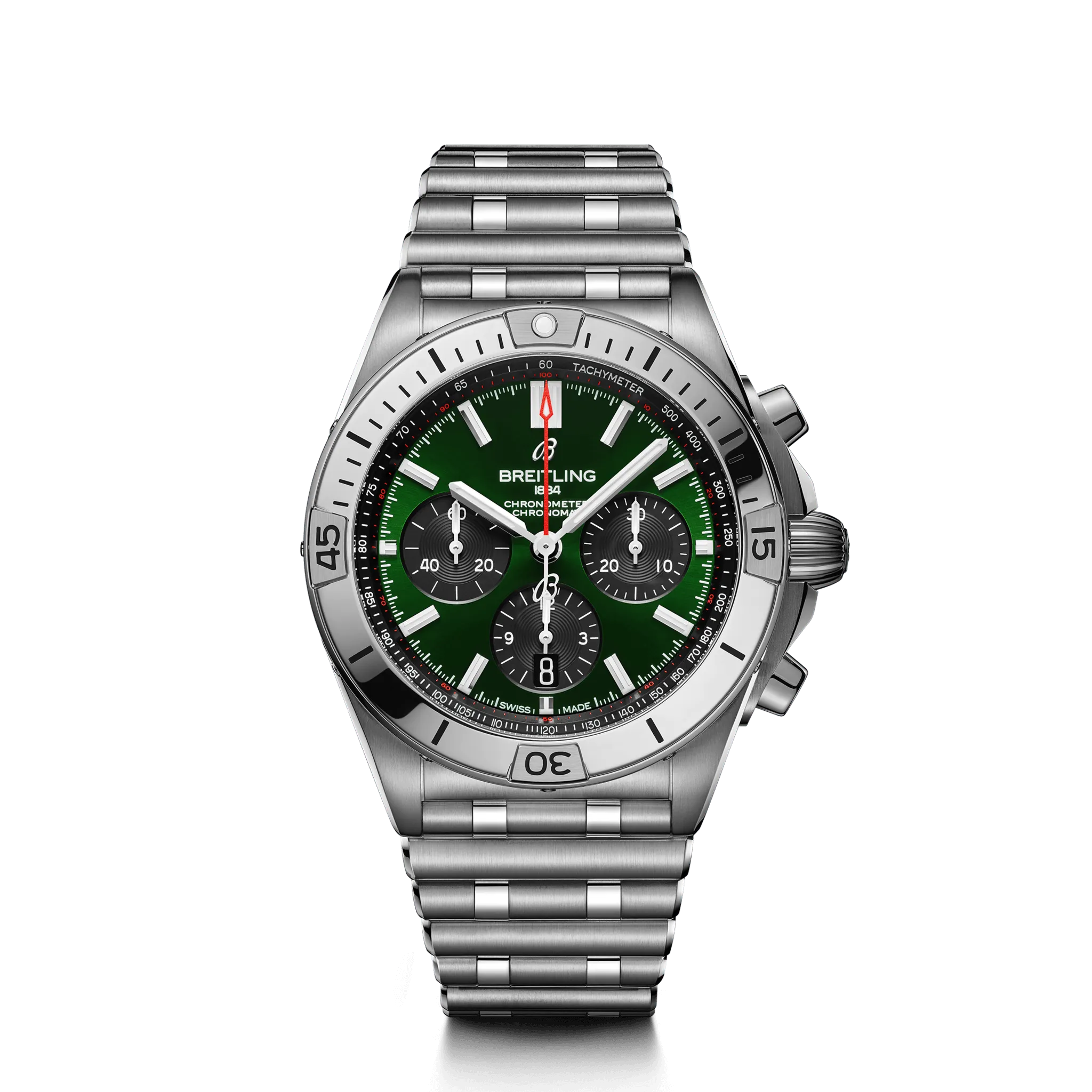 Breitling’s all-purpose watch for your every pursuit. The Chronomat holds a significant place in Breitling’s history. Introduced in 1984, at a time where extra-thin quartz timepieces were the order of the day, Breitling placed a bold bet on an impressively proportioned mechanical watch. Based on the Frecce Tricolori chronograph, which had been developed and launched in 1983 in collaboration with the famed Italian aerial squadron, the Chronomat celebrated Breitling’s centenary in style and marked the return of the mechanical chronograph to its rightfully prominent place at the brand which had built its global reputation on these incredible watches. Available in a variety of materials including stainless steel and 18k red gold, the Chronomat features a 42 mm case and the iconic bezel with the four rider tabs. Available with a range of black, blue, silver, and copper dials, the Chronomat is matched to the signature “Rouleaux” bracelet and is powered by the in-house Breitling Manufacture Caliber 01, a COSC-certified chronometer.