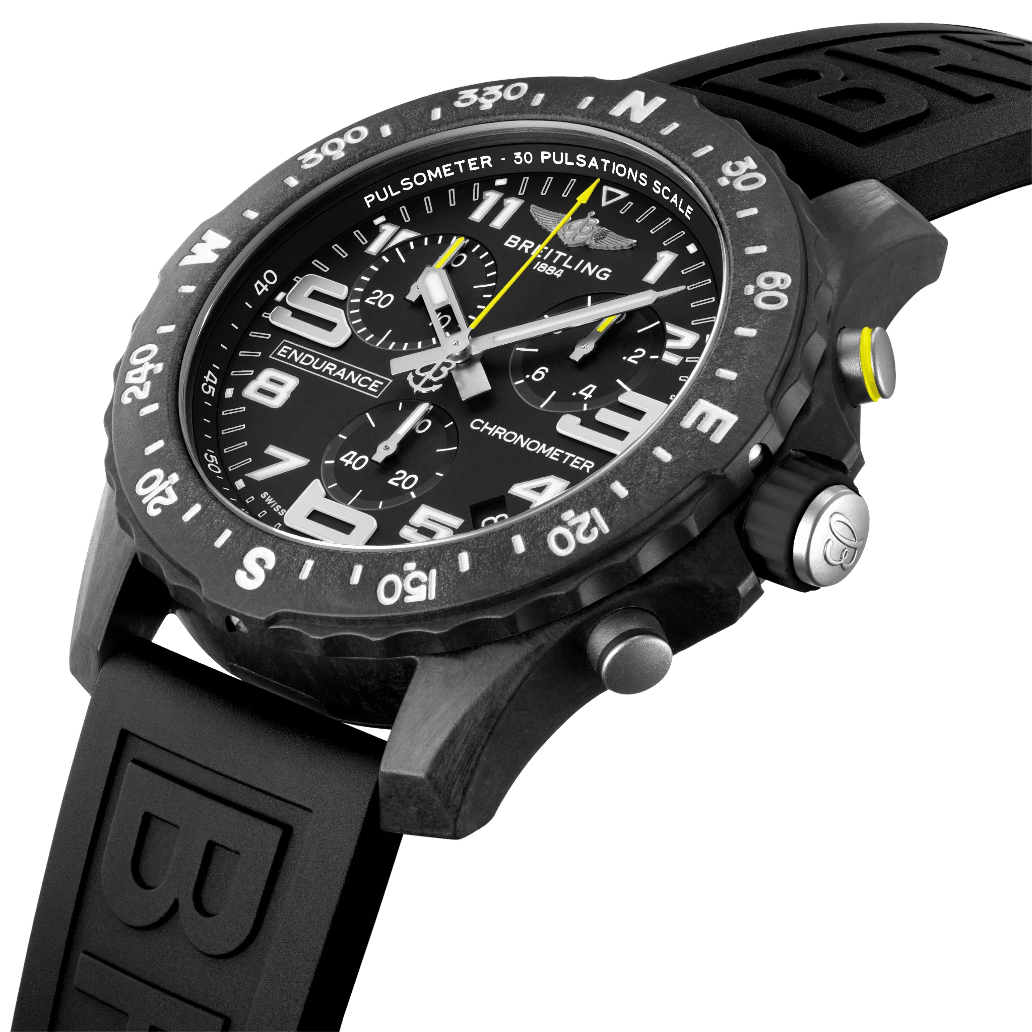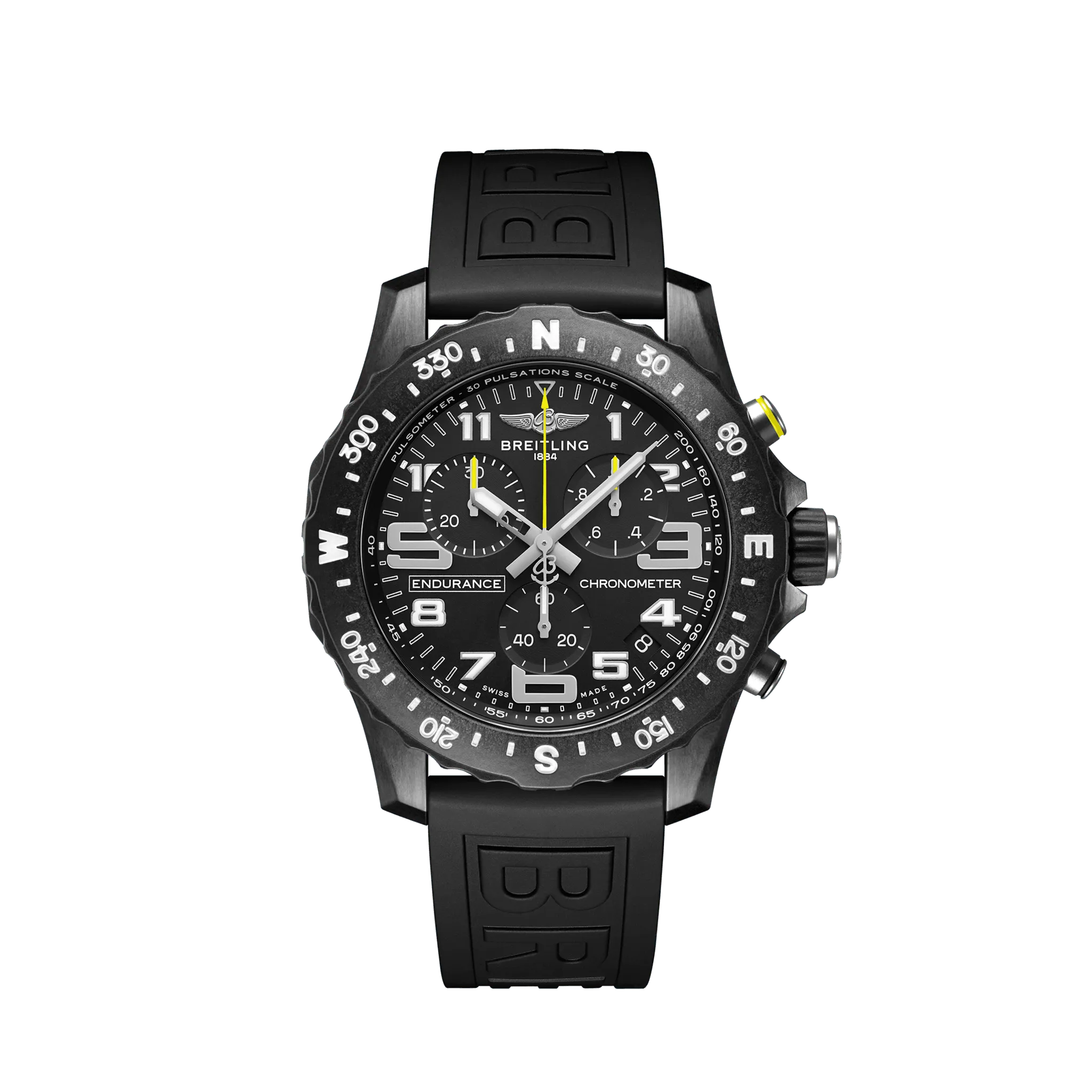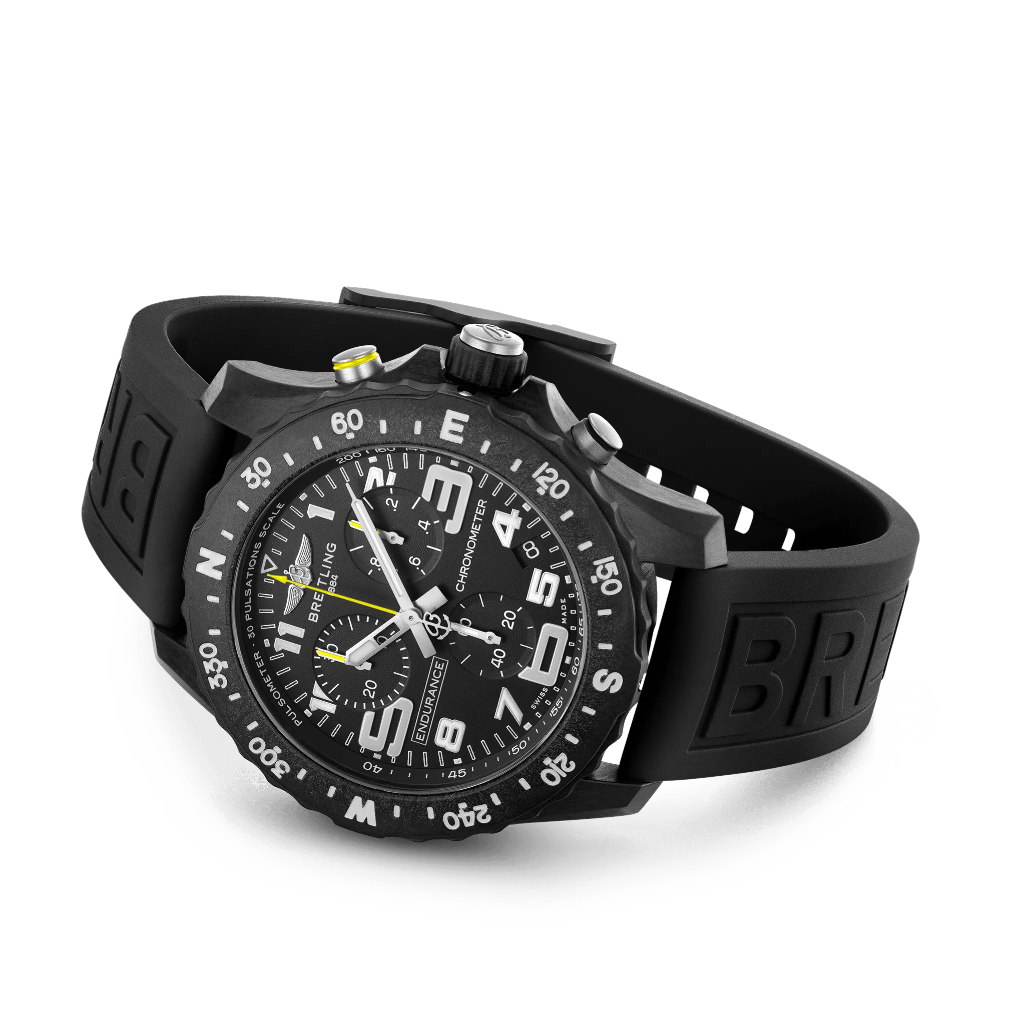 Designed to be both a lightweight watch for athletes and a casual, everyday sports chronograph, the Endurance Pro perfectly blends high precision & innovative technology with a vibrant & colorful design. It is the ultimate athleisure watch. Designed for men and women whose active lives blend a professional mindset with a sporty lifestyle, the Endurance Pro is equal to the challenges of a rigorous workout but fashionable enough for everyday wear. The Endurance Pro features an ultra-light Breitlight® case, a robust material 3.3 times lighter than titanium and 5.8 times lighter than stainless steel. Non-magnetic, thermally stable and hypoallergenic, Breitlight® is highly resistant to scratches, traction and corrosion. It also has a touch that is warmer than metal and a slightly textured effect accentuating the originality of the design. Exclusive to Breitling, it is 100% Swiss-made. Offered with a set of colorful dial and rubber straps fitting a Breitlight® double tang-type buckle, the Endurance Pro can also be paired with one of Breitling’s colorful Outerknown ECONYL® yarn single-piece strap. Powering the Endurance Pro is Breitling’s Caliber 82, a COSC-certified SuperQuartz™ chronograph delivering exceptional precision.