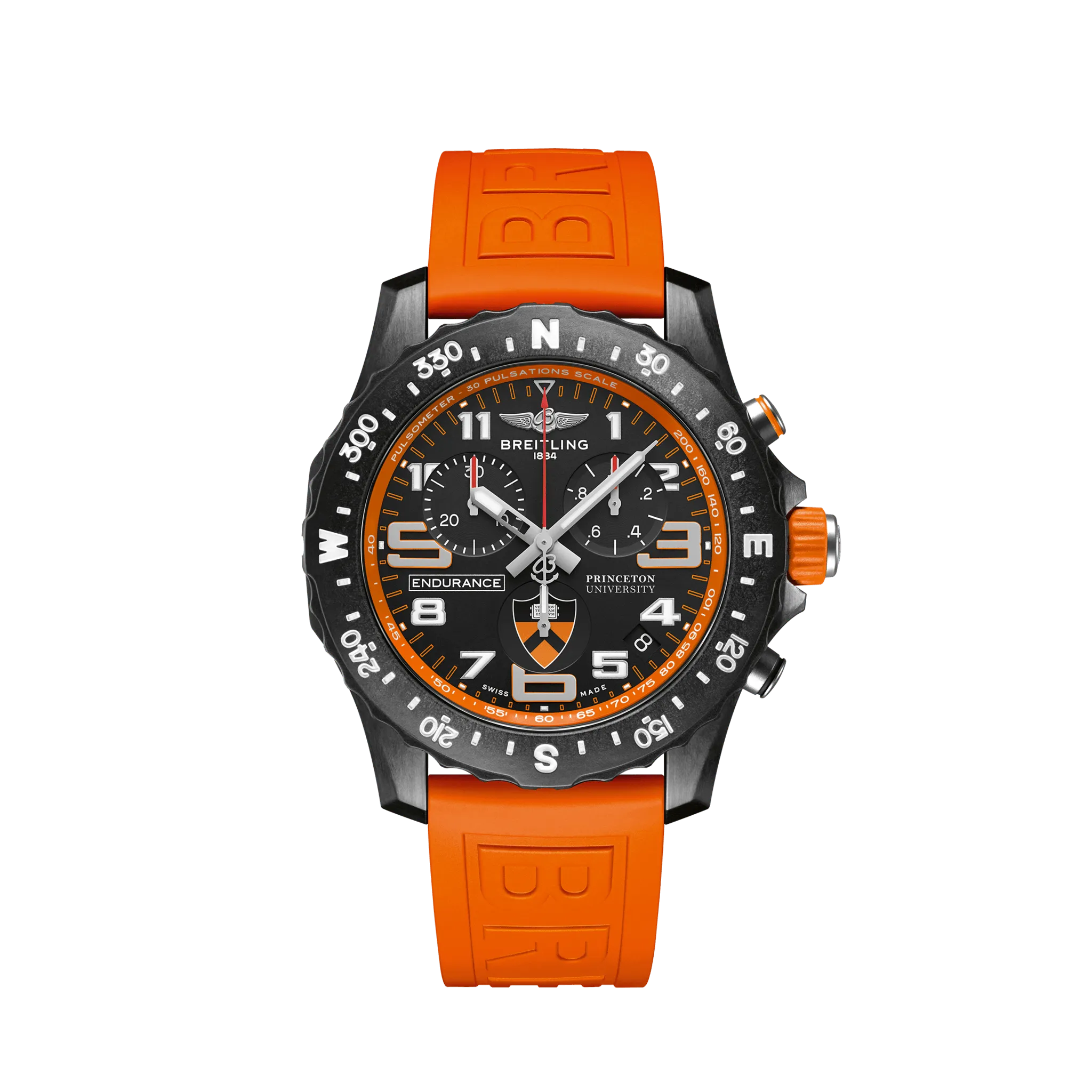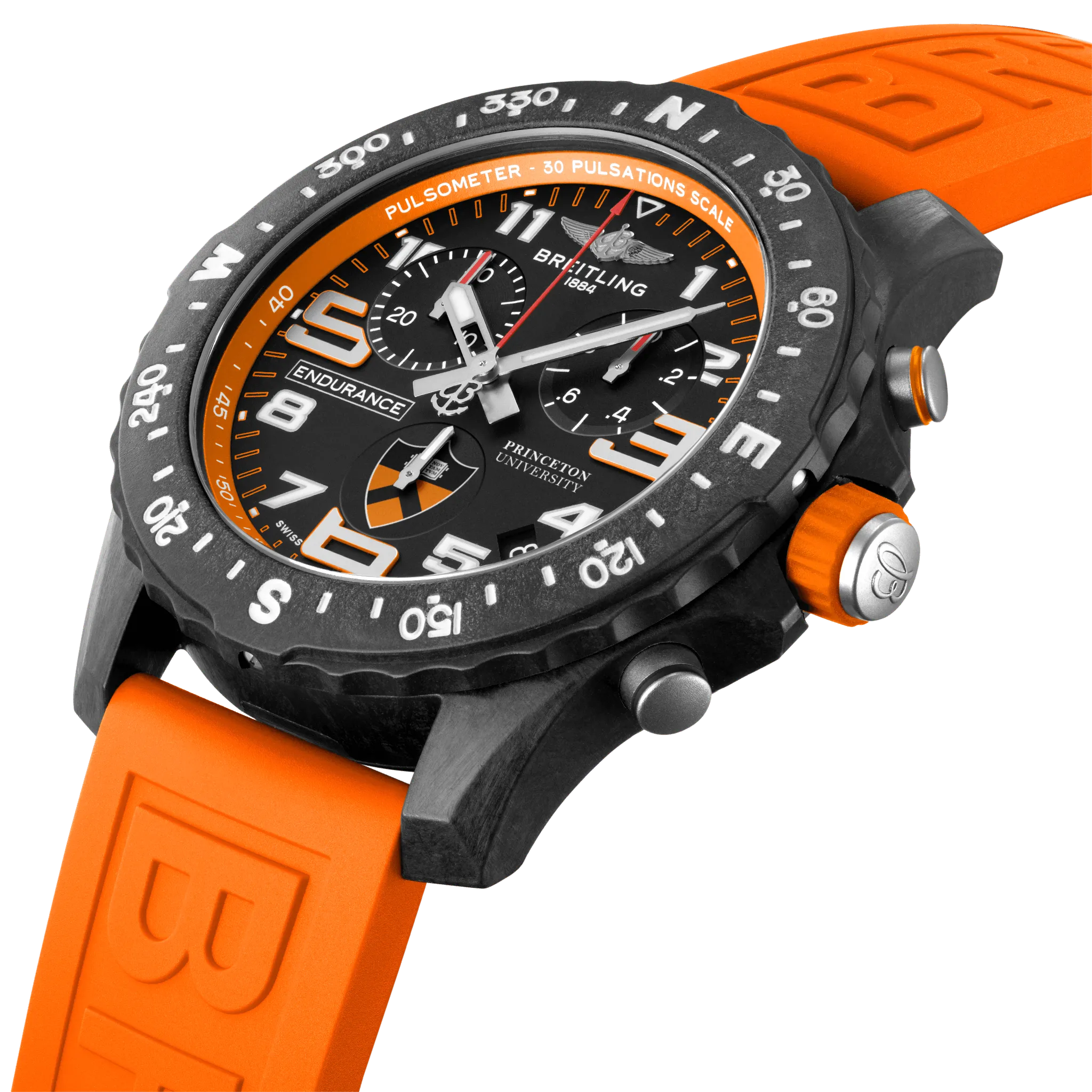 There's a reason we call our Endurance Pro “the ultimate athleisure watch.” It's because it can make the rounds from class to work to the gym without missing a beat. (Sound like a soon-to-be graduate you know?) Powered the Breitling Caliber 82, a COSC-certified SuperQuartz™ movement, the Endurance Pro (Princeton® University Edition) is the Ivy League of precision. The nostalgic Princeton® Orange strap and university shield on the dial and caseback make this a gift to wear and treasure, long after this year’s grads have turned the tassel. Designed for men and women whose active lives blend a professional mindset with a sporty lifestyle, the Endurance Pro is equal to the challenges of a rigorous workout but fashionable enough for everyday wear. The Endurance Pro features an ultra-light Breitlight® case, a robust material 3.3 times lighter than titanium and 5.8 times lighter than stainless steel. Non-magnetic, thermally stable and hypoallergenic, Breitlight® is highly resistant to scratches, traction and corrosion. It also has a touch that is warmer than metal and a slightly textured effect accentuating the originality of the design. Exclusive to Breitling, it is 100% Swiss-made.