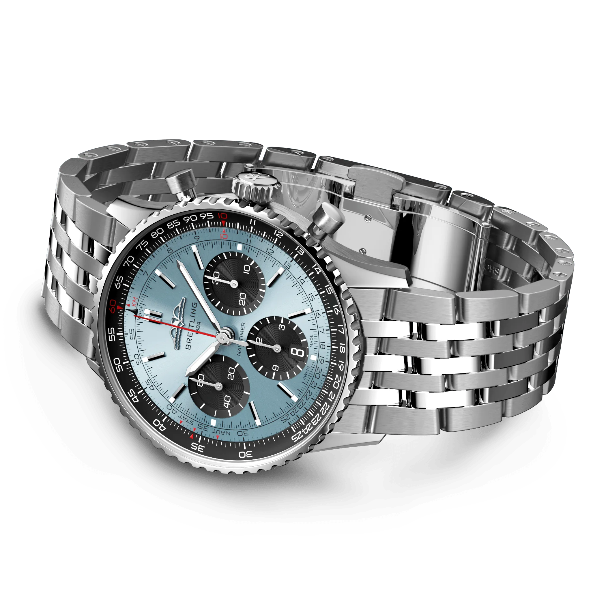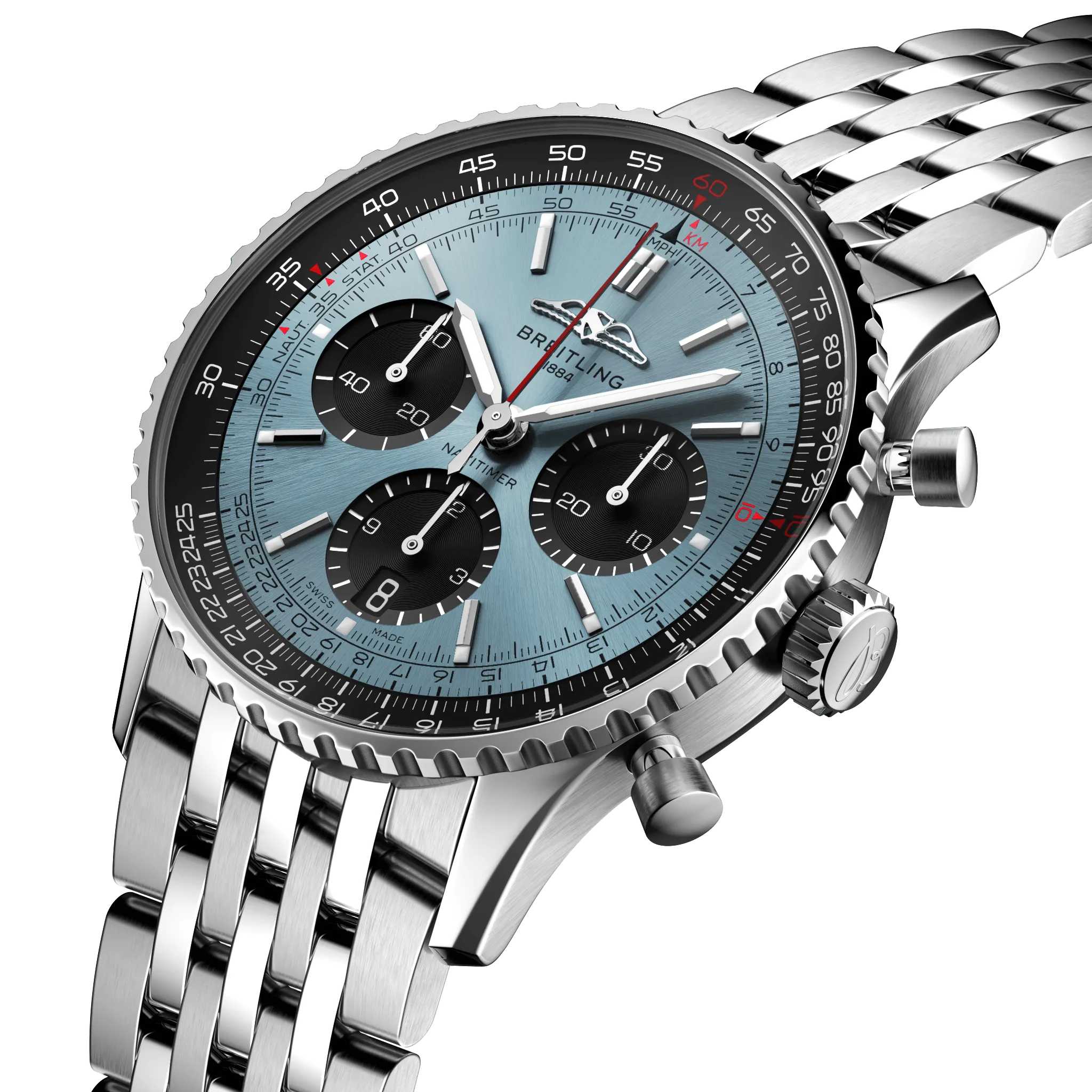 Breitling’s iconic pilot’s chronograph – for the journey. In 1952, Willy Breitling developed a wrist-worn chronograph with a circular slide rule that would allow pilots to perform all necessary flight calculations. Two years later, the Aircraft Owners and Pilots Association (AOPA) announced the design as its official timepiece. The “navigation timer” – or Navitimer – was born. The AOPA was (and remains) the largest pilots’ club in the world, counting nearly every US aviator among its ranks. As the defacto pilot’s watch throughout the glory days of civil aviation, the Navitimer was worn by airline captains and aircraft enthusiasts. It even made its way into space on the wrist of astronaut Scott Carpenter in 1962. And it wasn’t only pilots drawn to the watch’s irrepressible aesthetic. Celebrities of the day such as Miles Davis and Serge Gainsbourg were devotees, proving that the Navitimer had style as well as function. There have been many iterations of Breitling’s icon since its debut 70 years ago, but this new Navitimer captures its most classic features, while enhancing them with modern refinements. A flattened slide rule and a domed crystal create the illusion of a sleeker profile. Alternating polished and brushed metal elements give a lustrous, yet understated finish. Most notably, new colors in shades of blue, green and copper, define the updated dial options. And if there is one update sure to spark nostalgia, it’s the return of the AOPA wings to their original position at 12 o’clock. For 70 years, Breitling’s original pilot’s watch has been beloved by aviators and tastemakers in equal measure. Worn by astronauts in space and the biggest stars on earth, it is Breitling’s most iconic timepiece and one of the most recognizable watches of all time.