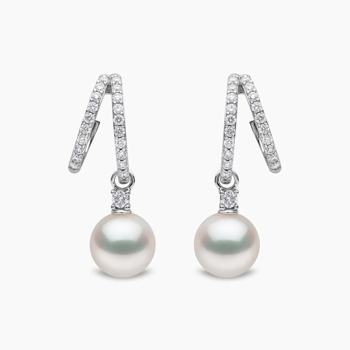 Introducing our Baby Glitz Double Hoop Diamond Earrings. Crafted to enchant, these earrings feature a double hoop design, meticulously adorned with diamonds set in 18k gold. Suspended below a lustrous Japanese Akoya pearl. This design created the illusion of two hoops in one, enhancing the allure of the earrings.