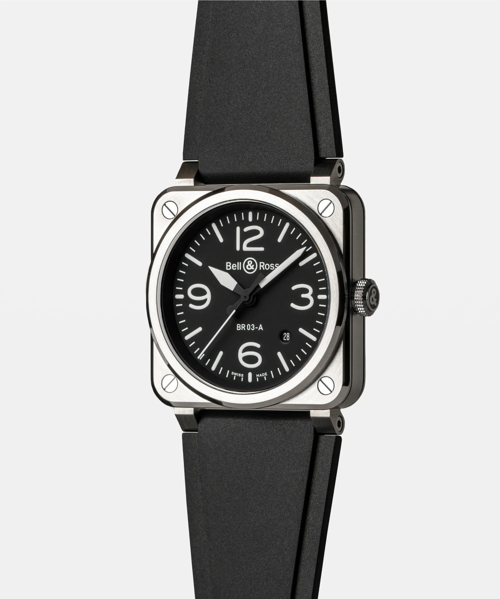 The BR 03 collection embodies the brand's identity and symbolises its style thanks to its iconic "circle in a square with four screws" motif. Faithful to the codes that underpin its identity, the new BR 03 features a slightly smaller format and the 54-hour power reserve provided by the latest-generation BR CAL.302 calibre.