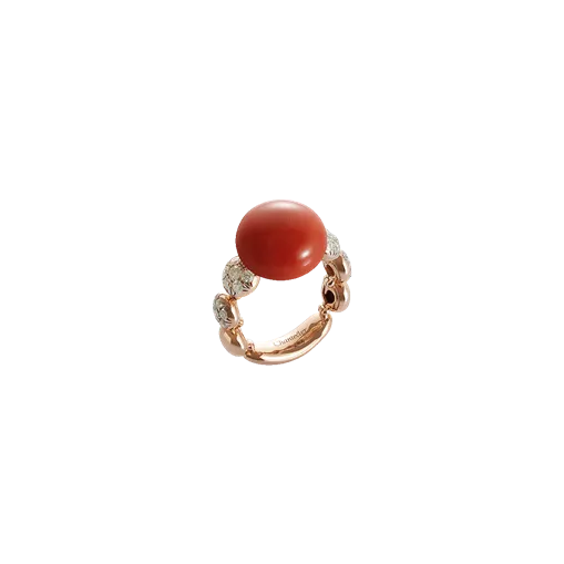 Bon Bon ring in 18Kt pink gold, diamonds and red coral