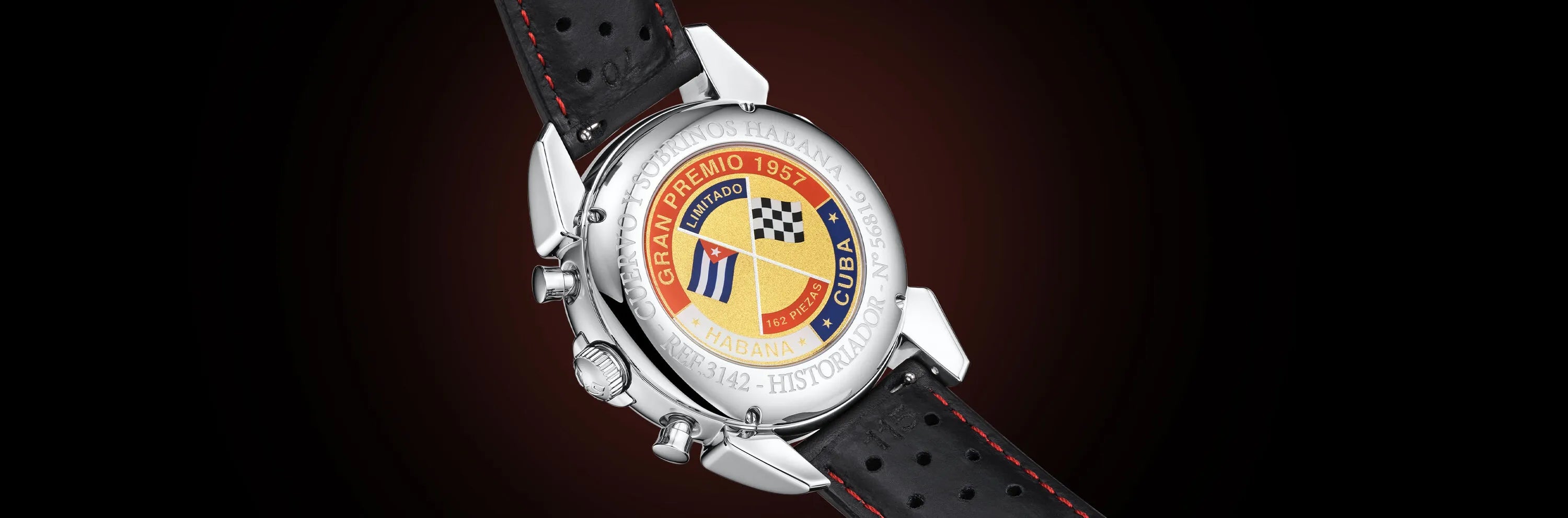 Limited Edition 162 pieces Cuervo y Sobrinos has looked back to 1957, a time when Cuba hosted the action-packed Cuban Grand Prix. The suitably-named Cuervo y Sobrinos Historiador Gran Premio de Cuba “1957” is a new chronograph, limited to 162 pieces, inspired by the historical race, but crafted for a modern-day audience.