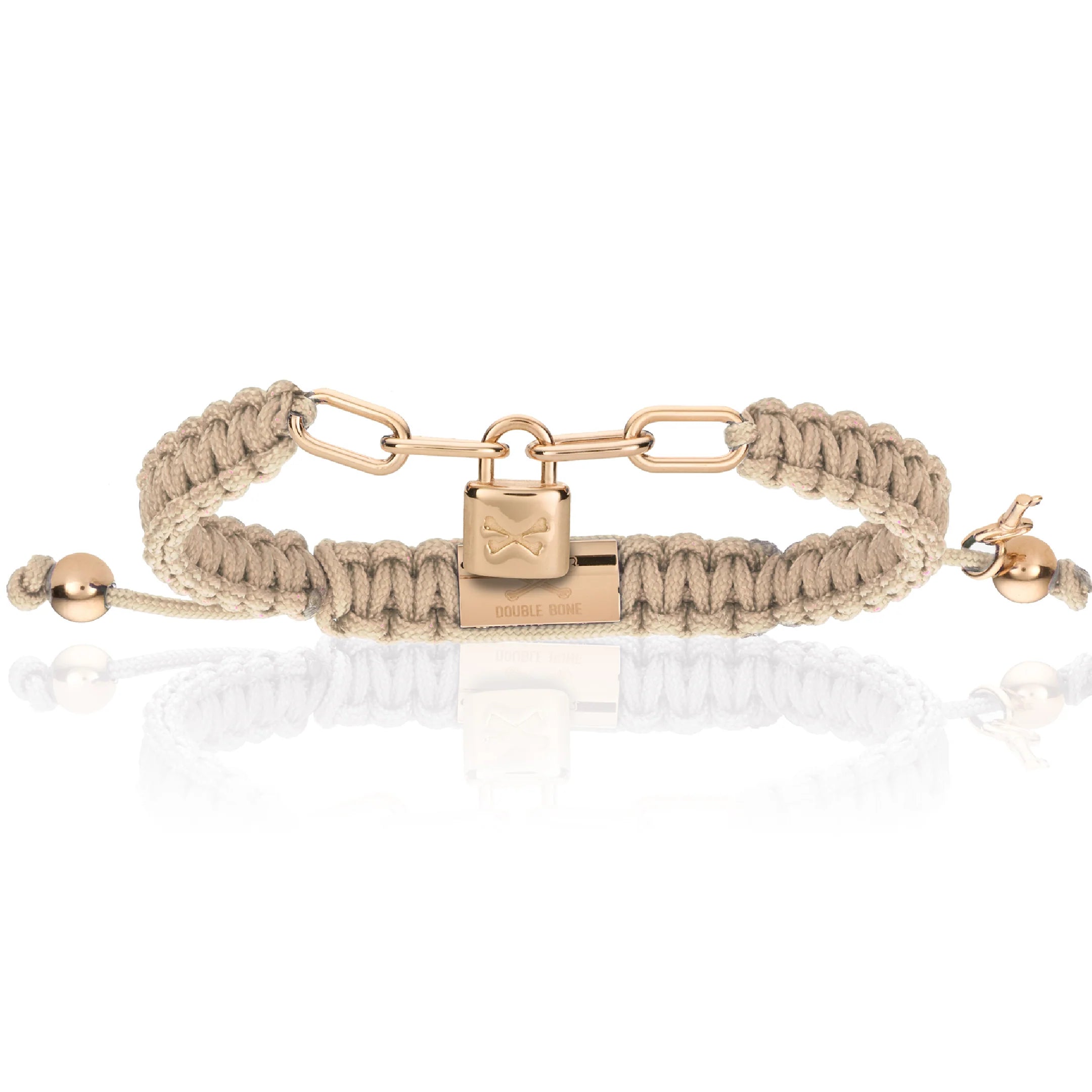 Made of premium polyester-nylon chord and 18K Rose Gold, Yellow Gold, White Gold or Black PVD details. Add it to your Double Bone collection and complete the look!