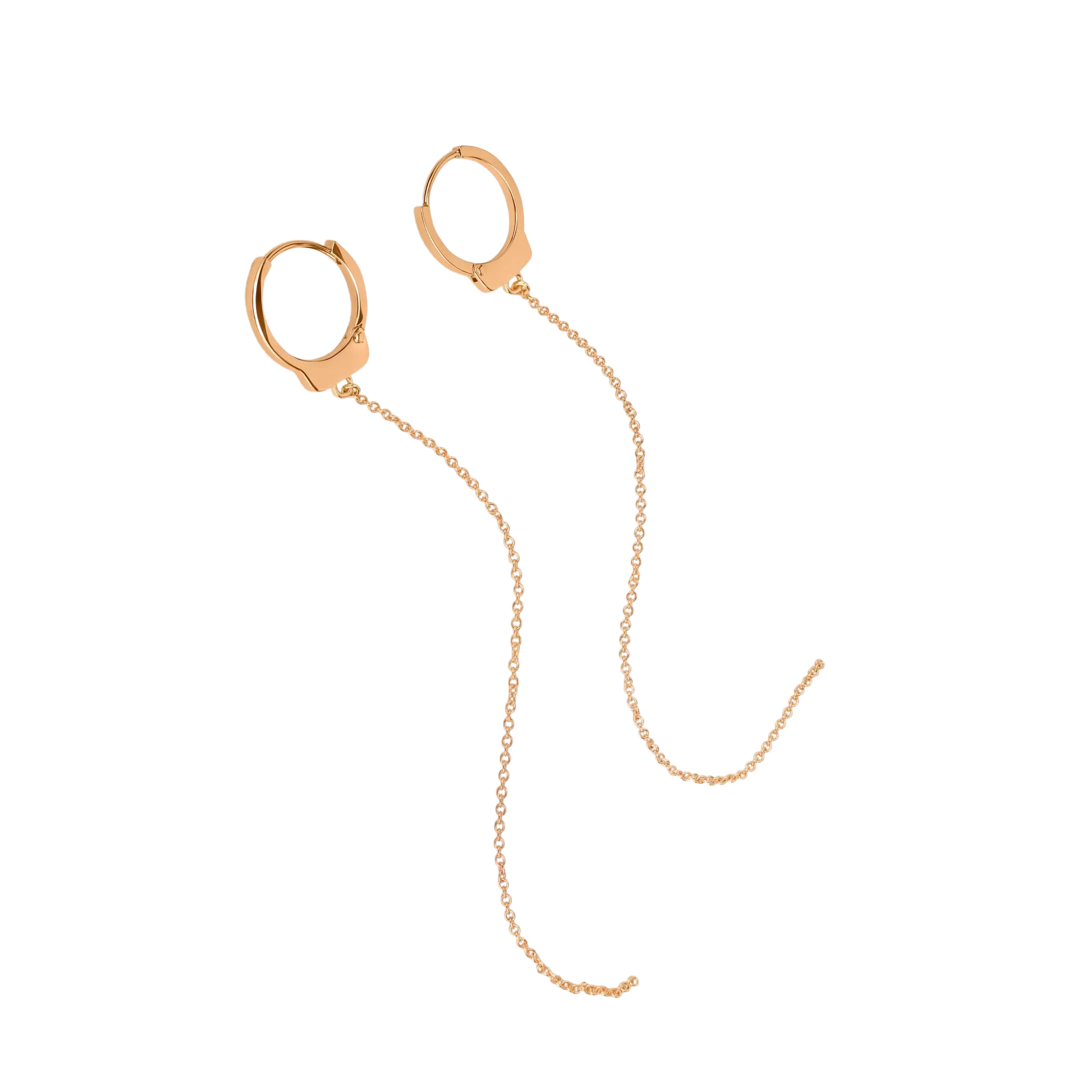 When traditional symbols of undying love just won't cut it anymore, these hand-cuff themed jewels are a unique way of showing your significant other the way you feel. 18K Rose Gold.