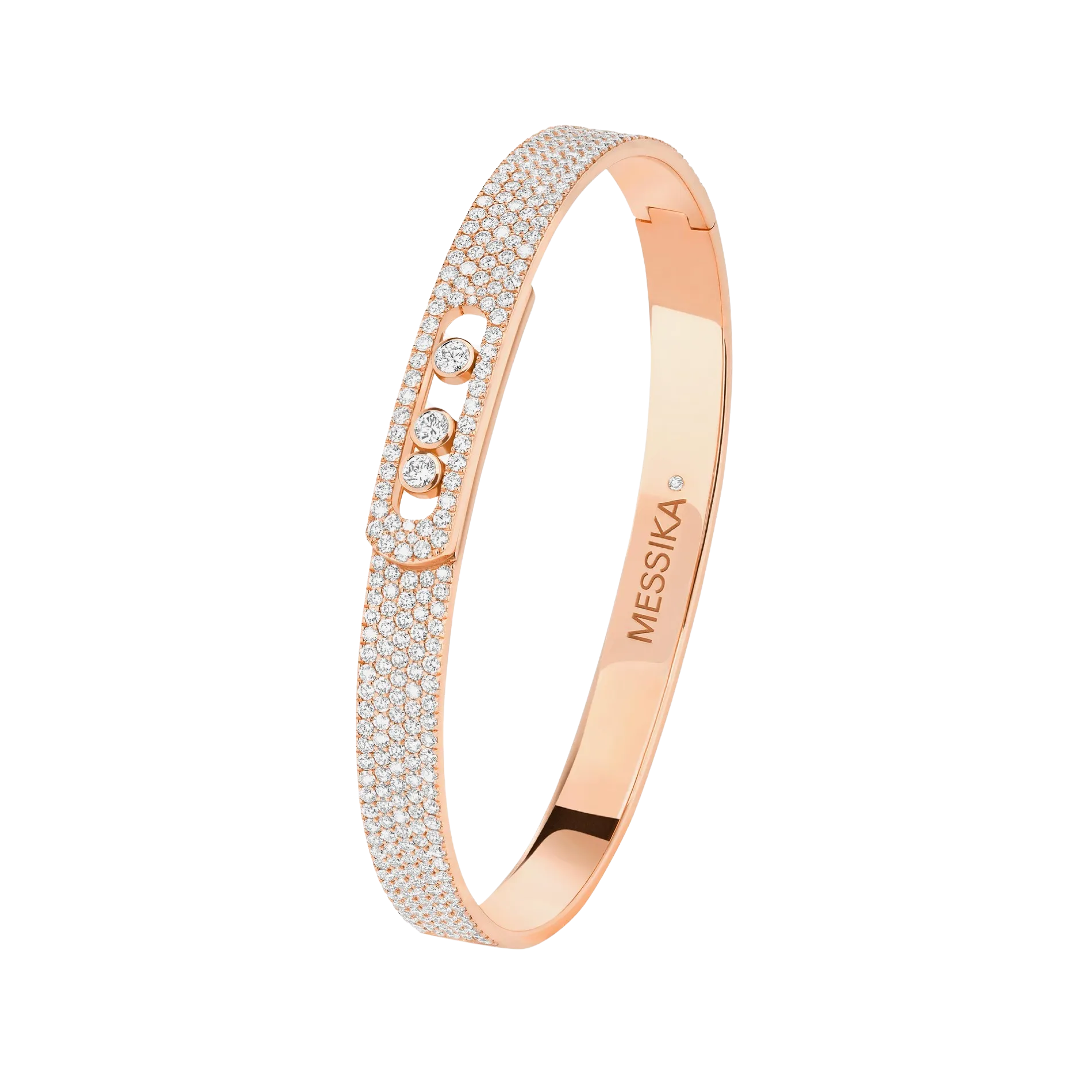 Valérie Messika introduces the fully set version of the Move Noa diamond bracelet. The 3 moving diamonds of this signature bracelet symbolise the past, present and future. The radiance of the white gold is magnified by a layer of meticulously set diamonds. To wear alone or stacked, the Move Noa full pavé diamond bracelet will adorn your wrist and accentuate all your outfits. Designed for easy removal, you are free to wear it and take it off as you wish! The perfect gift to celebrate an achievement!