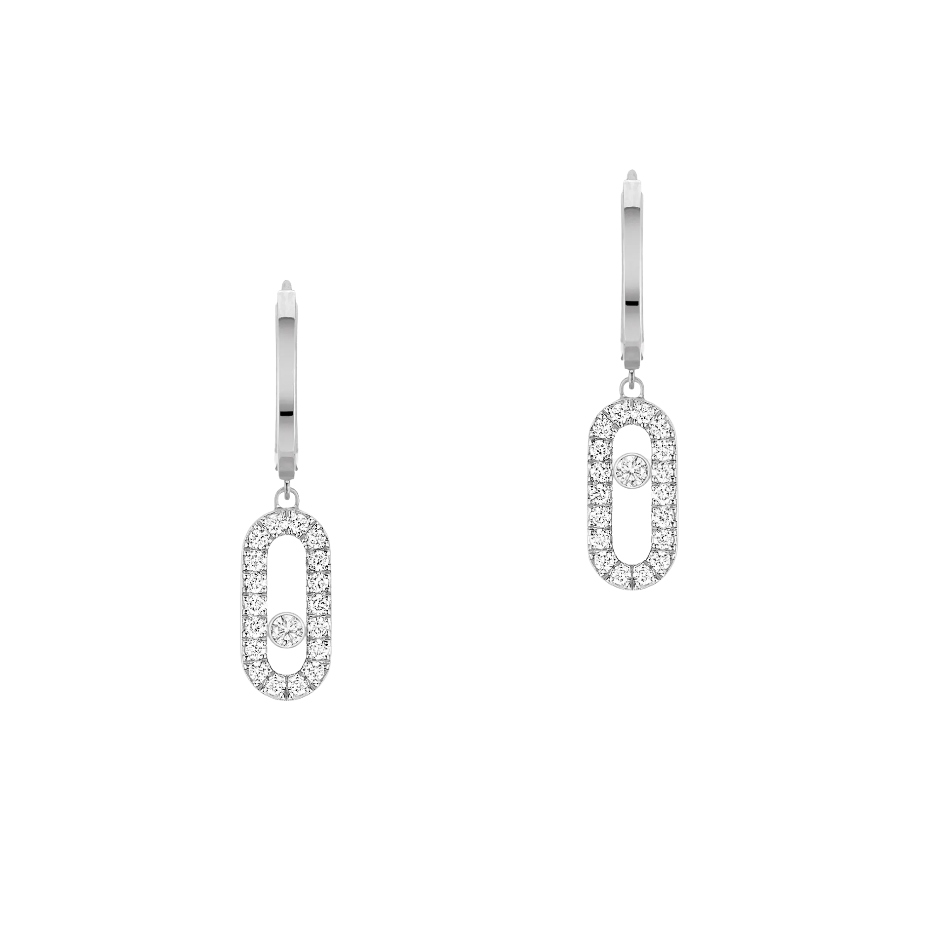 Looking for a pair of feminine luxury hoop earrings to wear every day? Discover the new Move Uno diamond hoop earrings. These handmade earrings in 18K white gold and paved with diamonds feature an iconic Messika motif: a diamond set between two rails, which dances with the rhythm of your movements. The result: extremely comfortable hoops with a delicate design. To wear as a pair, to stack on the same ear, or to wear as a single earring. So many possibilities to mix up your style.