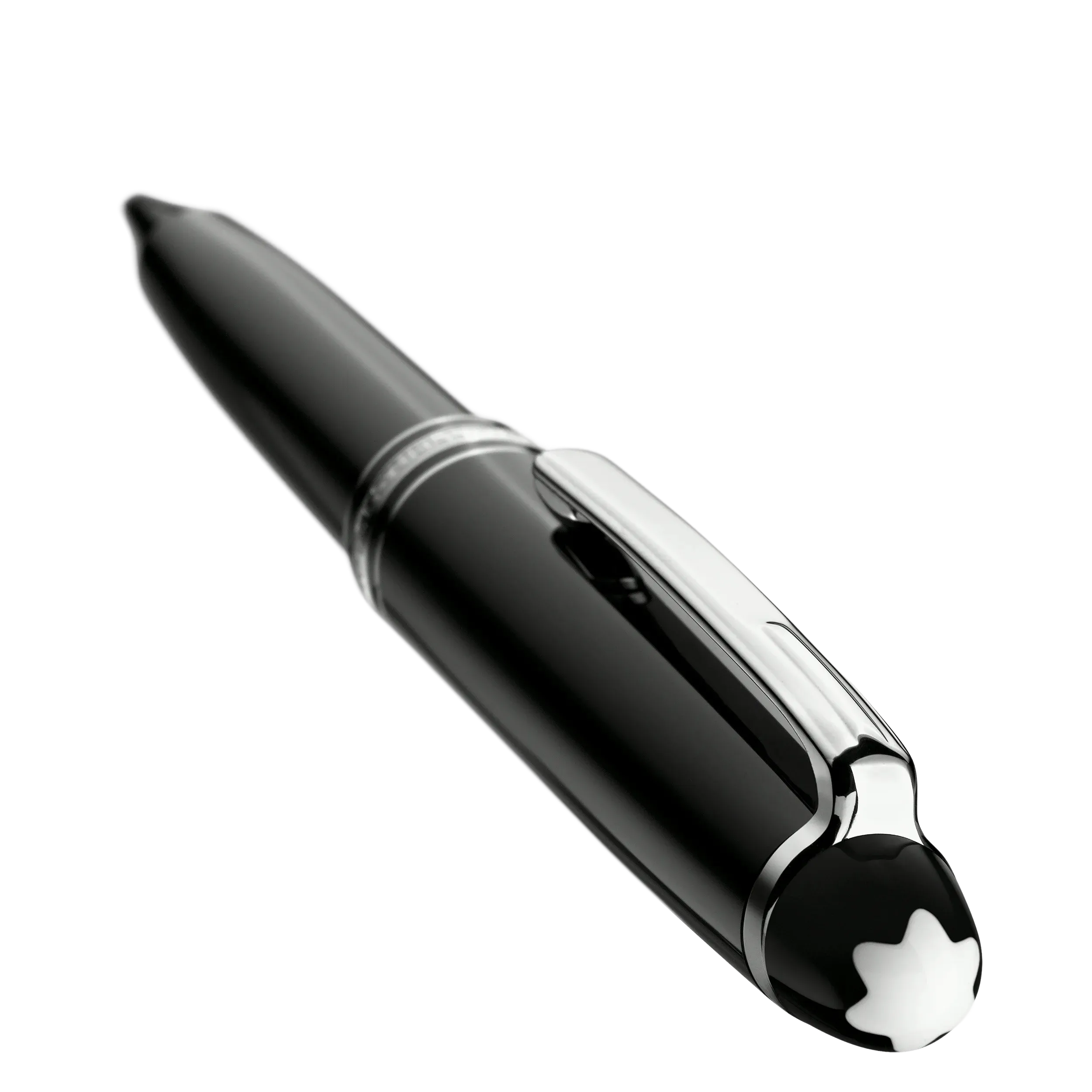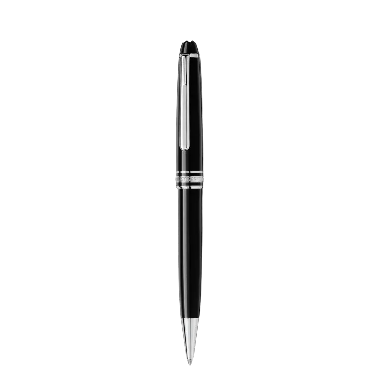 The luxury ballpoint pen Meisterstück Classique evolves into a distinctive design icon. Cap and barrel are crafted in black precious resin inlaid with a white Montblanc emblem. Three platinum-coated rings with embossed Montblanc lettering and a platinum-coated clip with an individual serial number emphasize the timeless design of this luxurious ballpoint pen. To express your personality, Montblanc offers a gratuitous engraving of names or initials by the right side of or on the elegant platinum-coated clip. At a time when individuality is becoming increasingly rare, our Mystery Black, Pacific Blue, Nightfire Red, Fortune Green, Amethyst Purple and Barbados Blue ballpoint pen refills let you show your individual writing style.