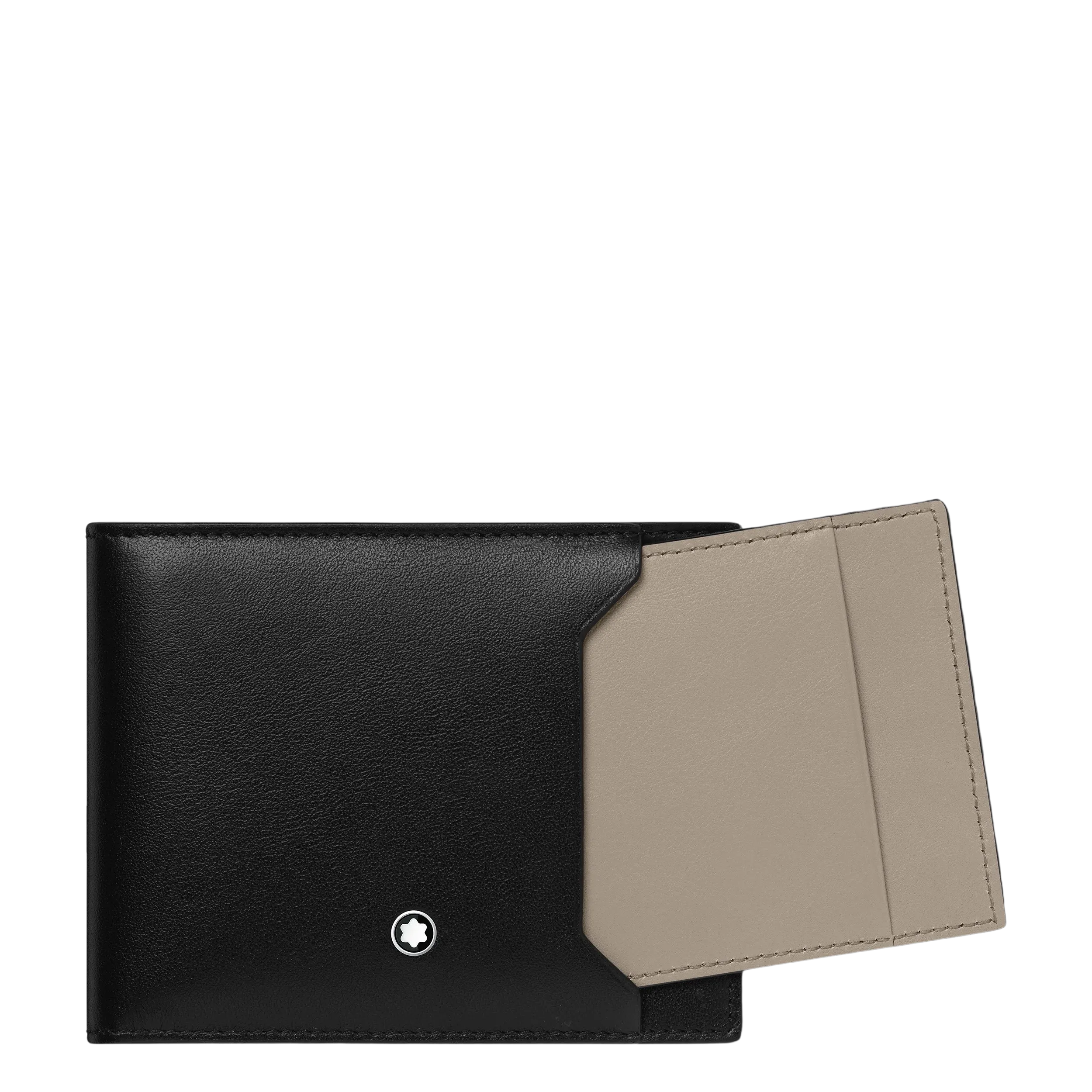 Crafted in a sophisticated soft leather, this wallet combines functional design with style. Featuring slots for six credit cards in its inside, as well as two banknote compartments and two additional pockets for small belongings, the wallet also comes with a removable card holder with three card slots that can be carried separately or inside the wallet for additional storage space.
