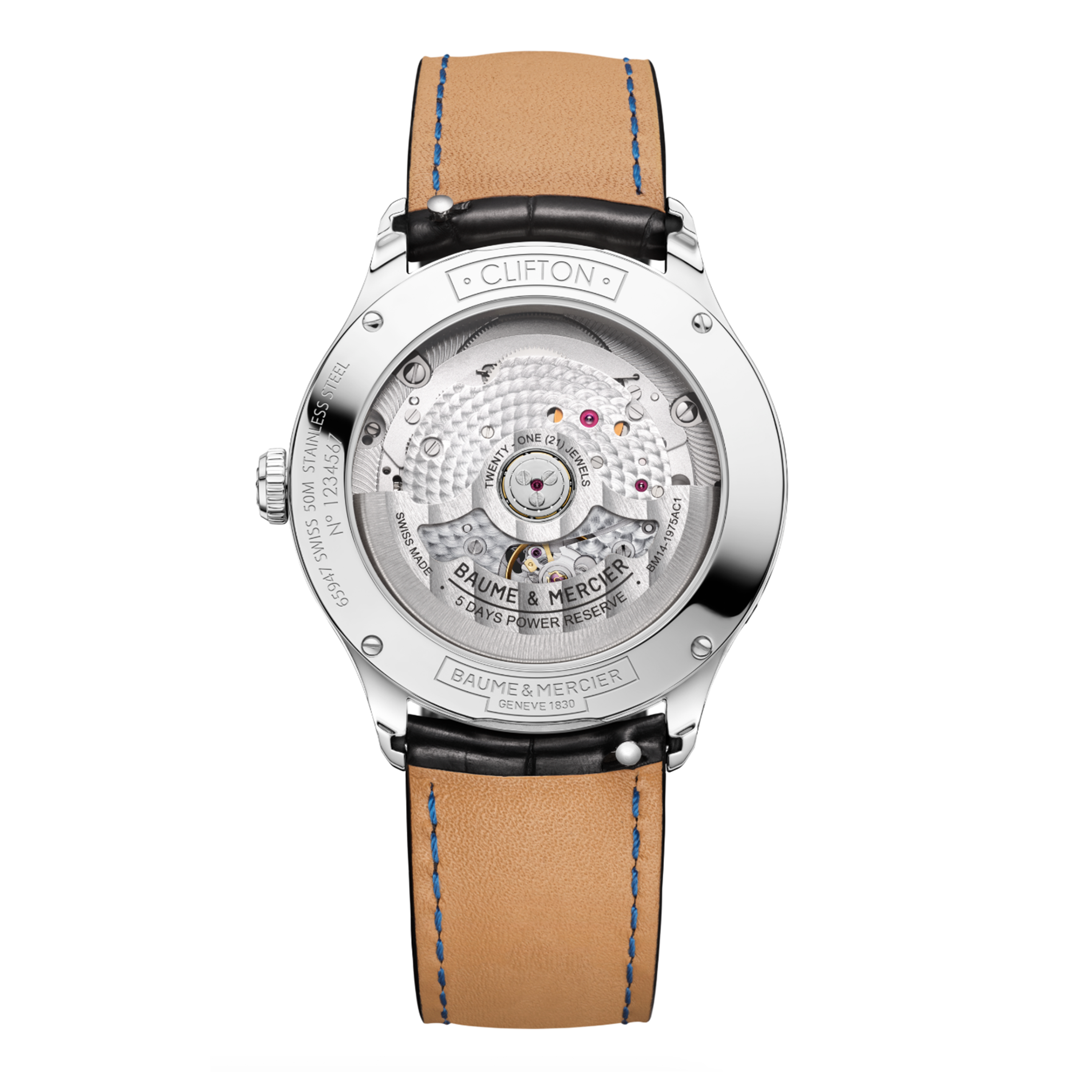 As a moon-phase and date timepiece, the Clifton Baumatic 10758 embodies the quintessence of refinement with its stainless steel case, gradient grey lacquered dial and rhodium-plated attributes. It comes with an interchangeable black alligator strap adorned with tone-on-tone stitching.