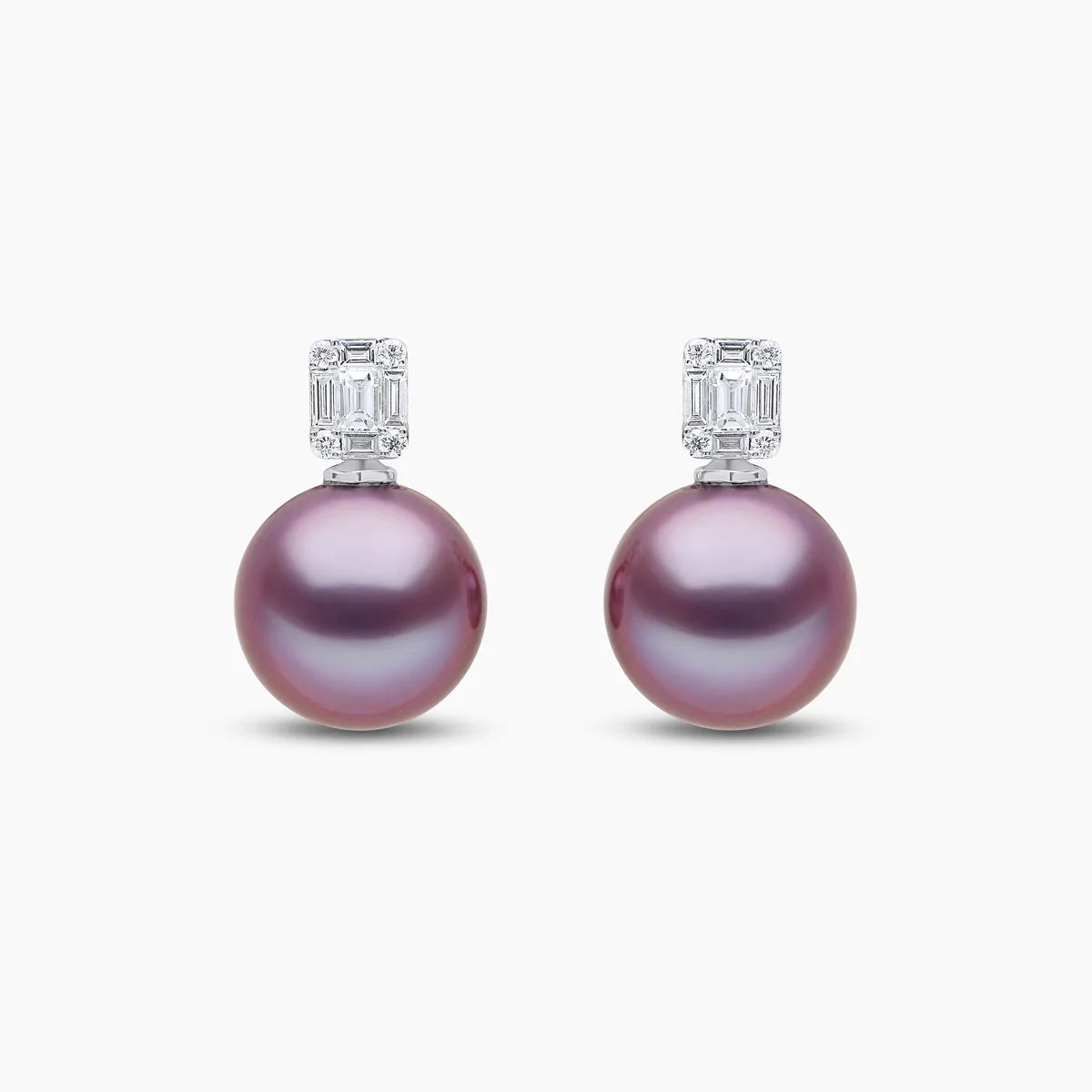 Each piece in our Starlight collection features, delicate alluring diamond patterns, reminiscent of the constellation that light up the night sky. This 18K gold earrings features a 10-11mmwhite australian south sea pearls beneath a hypnotic arrangement of diamonds.